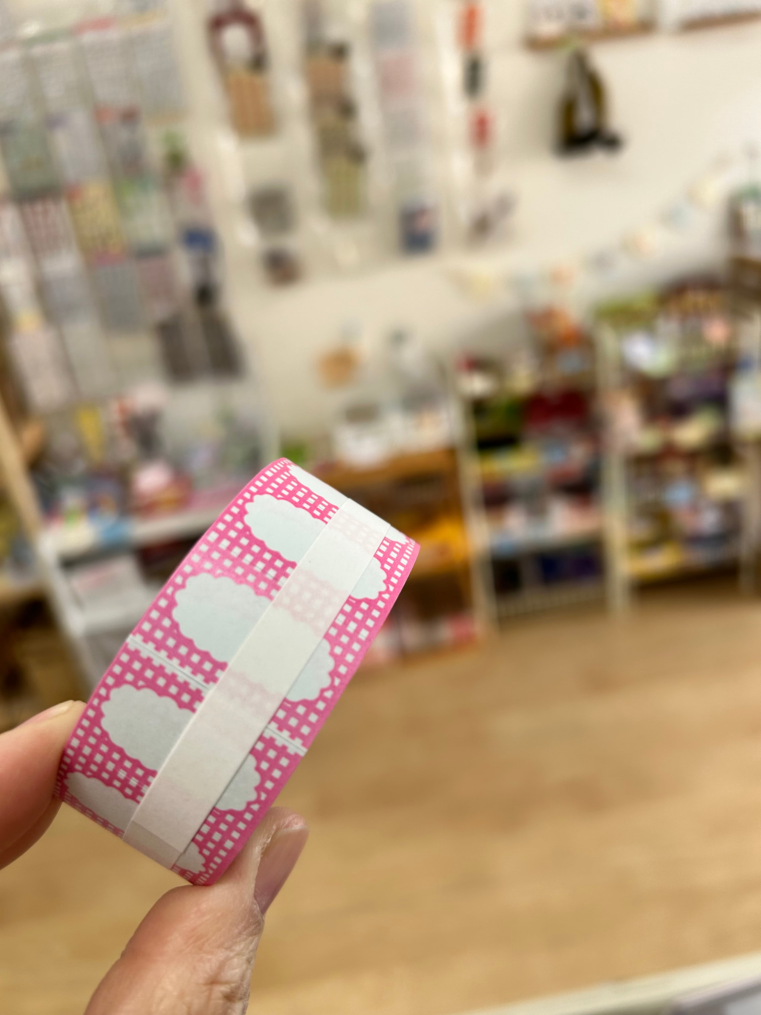 ラベラーシール 大きめサイズ ピンク チェック 枠