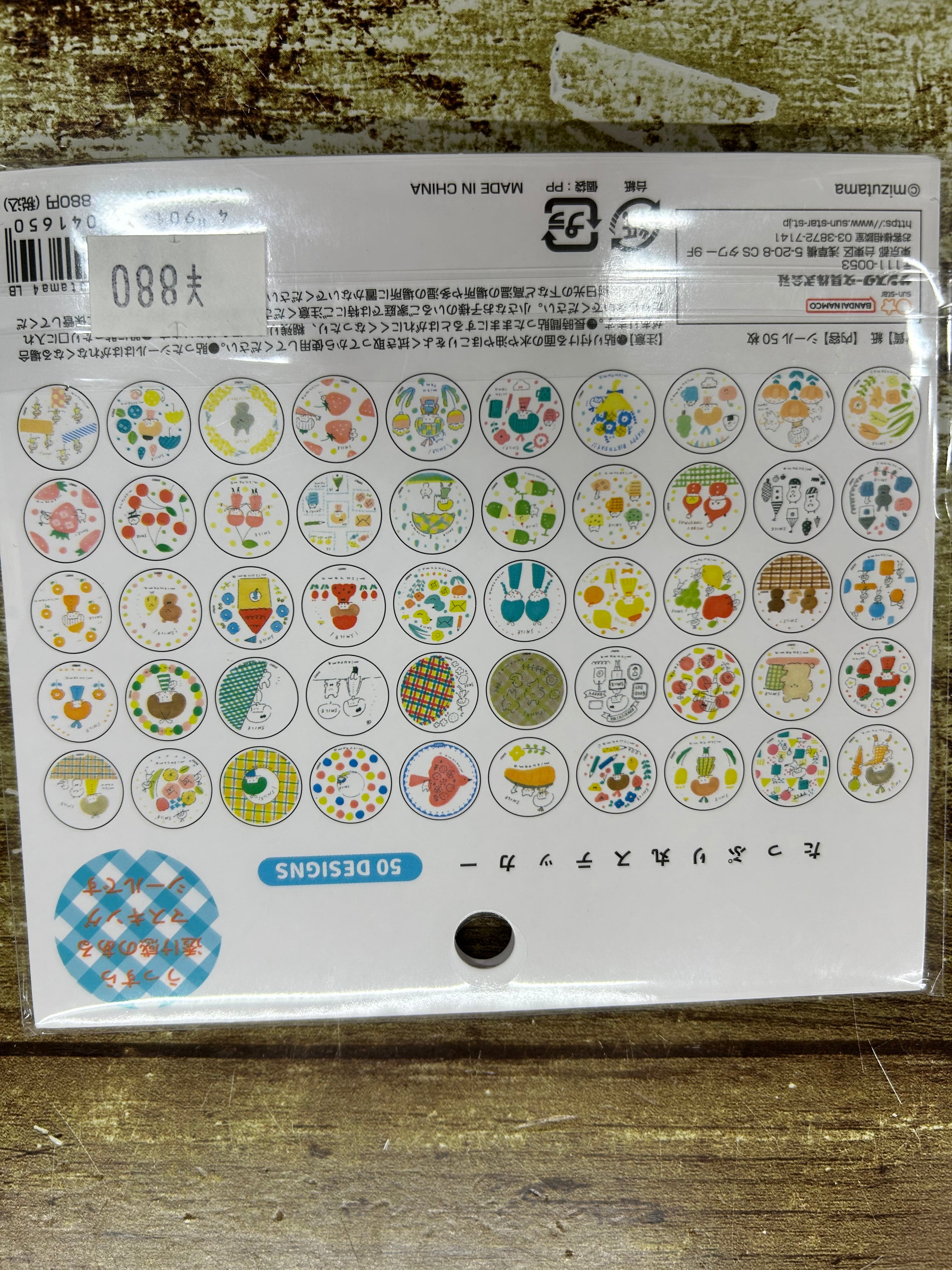 mizutama さんのイラストが50柄各1枚入りの丸ステッカーです。